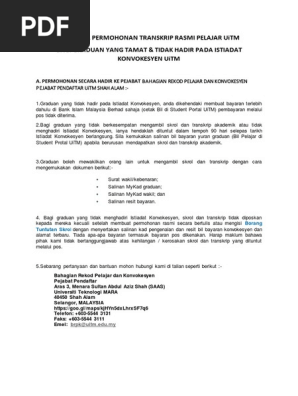 . Cara Mohon Transkrip Akademik dan Surat Pengesahan Tamat Pengajian Jawatan Kosong di Universiti Teknologi Mara UiTM Tarikh Tutup. Faculty of Civil Engineering UiTM Manualzz. Permohonan transkrip rasmi permohonan skrol skrol gantian permohonan surat pengesahan pelajaralumni maklumat istiadat konvokesyen.