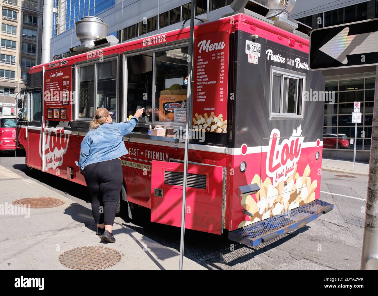 A Food Truck That Specialises In Poutine In Centre Of Downtown Ottawa With Customer Ordering At Window Stock Photo Alamy